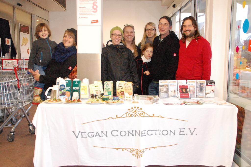 Am 03. November 2012 errichteten wir im tegut-Markt Langenselbold einen Informationsstand, den wir in der Zeit von 10:00 bis 18:00 Uhr betreuten. Die Marktbesucher konnten sich bei der Verkostung speziell veganer Lebensmittel aus dem Sortiment des Marktes von den schmackhaften Alternativen zu den leider gängigen Produkten aus Tierquälerei überzeugen. Zu den Alternativprodukten gehörten unter anderem veganer Käse und Vurstaufschnitt, auch wurden Alternativen zur Kuhmilch in Form von Soja-, Reis- und Hafermilch präsentiert.