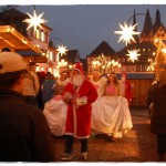 Auch in diesem Jahr haben wir unseren Walk act „Vegan Santa“ während des Weihnachtsmarktes in Gelnhausen am 14.12.2013 durchgeführt. Die Theateraktion sorgte wieder für tolle Stimmung und die meisten Besucher waren offen für die Infos und entzückt. Der Gelnhäuser Weihnachtsmarkt ist bekannt für seine „lebendigen Weihnachtsfiguren“ und unter diese haben wir uns wieder gemischt. Mit Herzen um den Hals mit den Aufschriften „Sei ein Engel, lebe vegan“ und „Vegan Santa – das Fest der Liebe und des Friedens für alle“ zogen wir los. Wir haben ca. 500 Flyer mit veganen Backrezepten sowie Informationen zur veganen Lebensweise verteilt und schöne Begegnungen gehabt. Außerdem sind die veganen Weihnachtsmänner und Frauen nun wieder in gefühlten 1000 Familienalben drin, denn alle fünf Meter mussten wir uns für Menschen als Gruppenbild aufstellen :). Frohe Weihnachten wünscht die Vegan Connection e.V. und Mitglieder des Feuertheater Sancto Petrolio 🙂