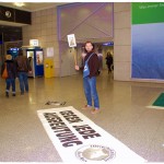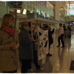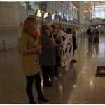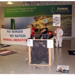 Am Samstag, dem 08.02.2014, fanden wir uns gemeinsam mit den Tierrechtler_innen der Tierrechtsinitiative Rhein-Main vor dem Air France Schalter im Terminal 2 des Frankfurter Flughafens ein, um dort gegen Tierversuchstransporte durch Air France / KLM zu demonstrieren. Banner, Plakate und Informationsmaterial sorgten für Aufklärung der vielen Passanten, von denen sich einige sehr interessiert an den Hintergründen für unseren Protest zeigten.