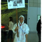 Am 15.02.14 waren wir auf der Zeil in Frankfurt, um die, von den Metalheads for Sea Shepherd organisierte Demonstration gegen das Abschlachten der Delphine in Taiji, zu unterstützen. Bei der Kundgebung performten wir die Szene „Totentanz“, die die Künstlerin und Autorin Vrieda Parré entwickelte, um die in Taiji stattfindenden Gräueltaten anhand dieser Theaterszene aufzuzeigen. Uns war es wichtig, die vorbeigehenden Stadtbesucher und die Delphine liebenden Menschen, auf die hinter hohen Mauern stattfindenden Massaker an Schweinen, Rindern und Hühnern, sowie weiteren sogenannten „Nutztieren“ hierzulande und weltweit, aufmerksam zu machen. Deshalb verteilten wir während der Demonstration insgesamt knapp 400 Flyer, um den Menschen Denkanstöße zu geben, dass JEDES Lebewesen ein Recht auf Leben hat und nicht nur Ausgewählte.