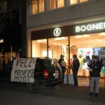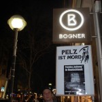 Am Freitag, dem 07.02.2014, unterstützten wir abermals die Tierrechtsinitiative Rhein Main, (www.tirm.de) um gegen die gewissenlosen Geschäftspraktiken von BOGNER zu demonstrieren. BOGNER fungiert seit 1936 durchgängig als Ausstatter der deutschen Olympiamannschaft. Dabei werden für die Kleidungsstücke Daunen, Pelz und Leder von zuvor gequälten und gemordeten Tieren verwendet.