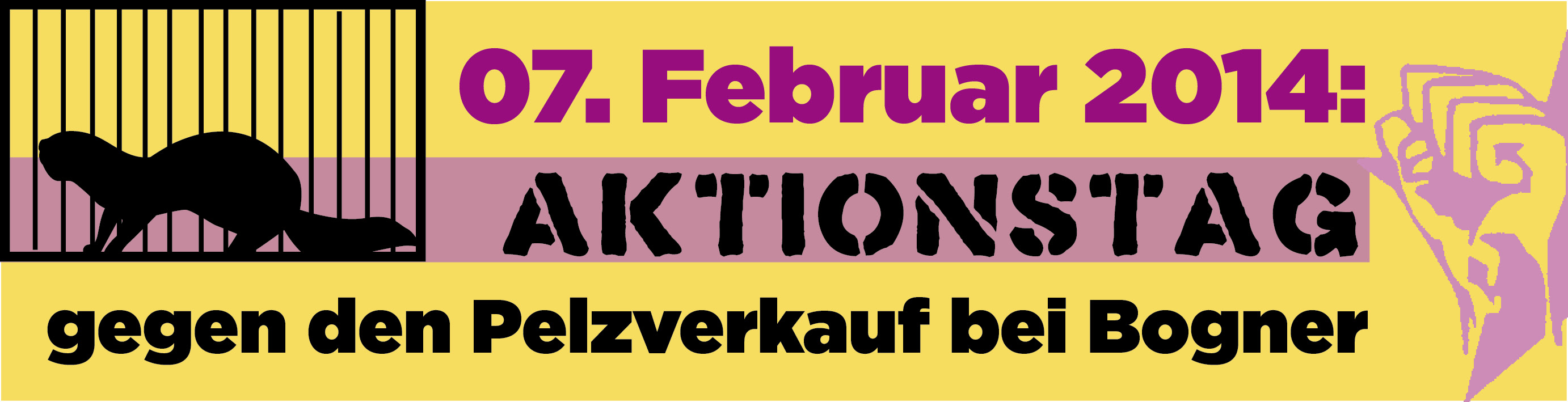 Wir schließen uns am Freitag, dem 07. Februar 2014, der Demonstration vor der Frankfurter Bogner-Filiale an, die von der Tierrechtsinitiative Rhein-Main organisiert wird. Der Aktionstag wurde von der „Offensive gegen die Pelzindustrie“ (OGPI) ins Leben gerufen.