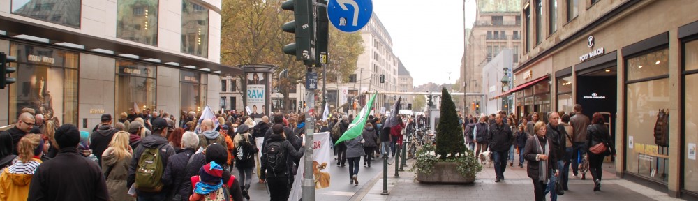 Am 25. Oktober 2014 nahmen wir an der „Demo für Tierrechte“ in Düsseldorf teil, welche von der Ortsgruppe der „tierbefreier e.v.“ organisiert wurde und an der ca. 250 Tierrechtler_innen teilnahmen.
