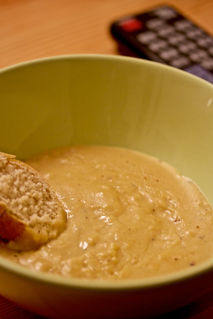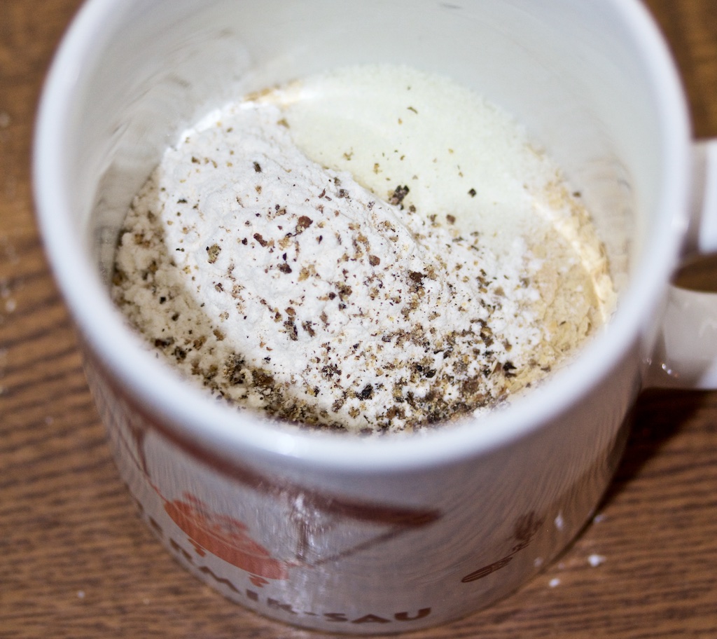 Hefeflocken, Dinkelmehl, Salz und Pfeffer mischen und dann ebenfalls in den Topf geben und nochmals kurz aufkochen.