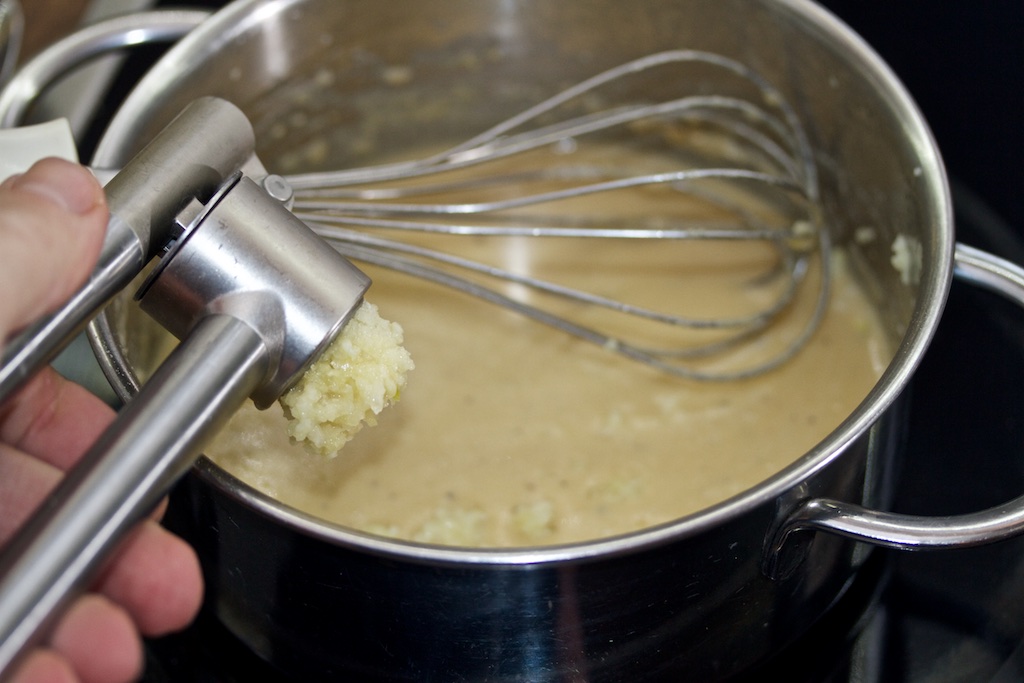 Wenn gewünscht, kann zum Schluss noch eine gepresste Knoblauchzehe eingerührt werden.